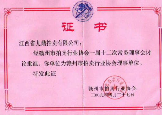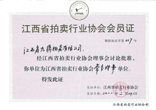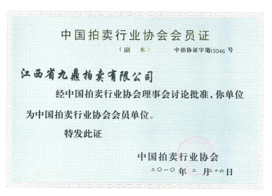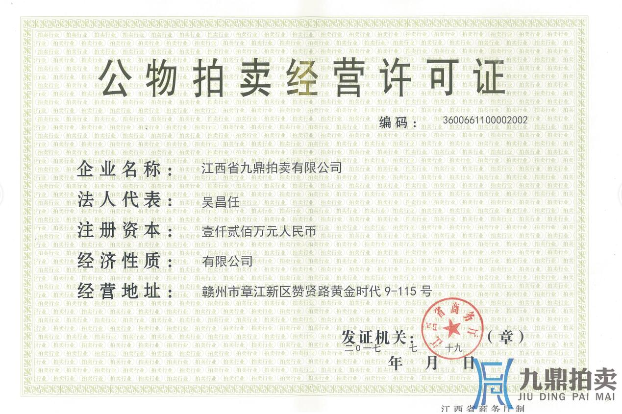 江西省九鼎拍賣有限公司是嚴格按照《中華人民共和國公司法》、《中華人民共和國拍賣法》等有關法律法規(guī)而成立的拍賣機構,是國家A級資質拍賣企業、中國拍賣行業協會會員單位、江西省公物拍賣指定單位、江西省拍賣行業協會常務理事單位,是目前江西省規(guī)模較大、起點較高的專業拍賣單位。公司遵照《中華人民共和國合同法》、《中華人民共和國拍賣法》等法律法規(guī)、政策,依法接受公民、法人或其他組織的委托,并提供財產鑒定評估、過戶代理等業務。